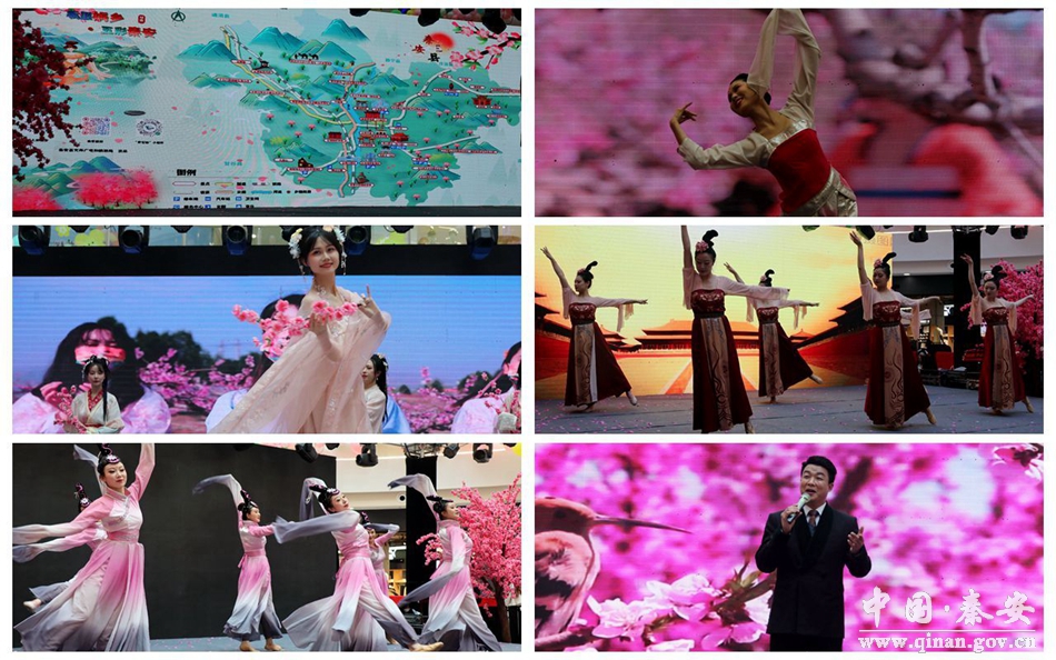 在衣袂飘飘、美轮美奂的开场舞《汉服秀》表演中,推介活动正式拉开了帷幕,随后歌曲《在那桃花盛开的地方》、舞蹈《桃夭》等精彩节目轮番上演,给观众送上了一场丰盛的视觉盛宴。推介会上,主持人对秦安的旅游文化资源进行了深度推介,并对三条精心设计的特色赏桃花旅游线路进行了详细介绍;现场还通过互动问答的形式送出了具有秦安特色的旅游纪念品。