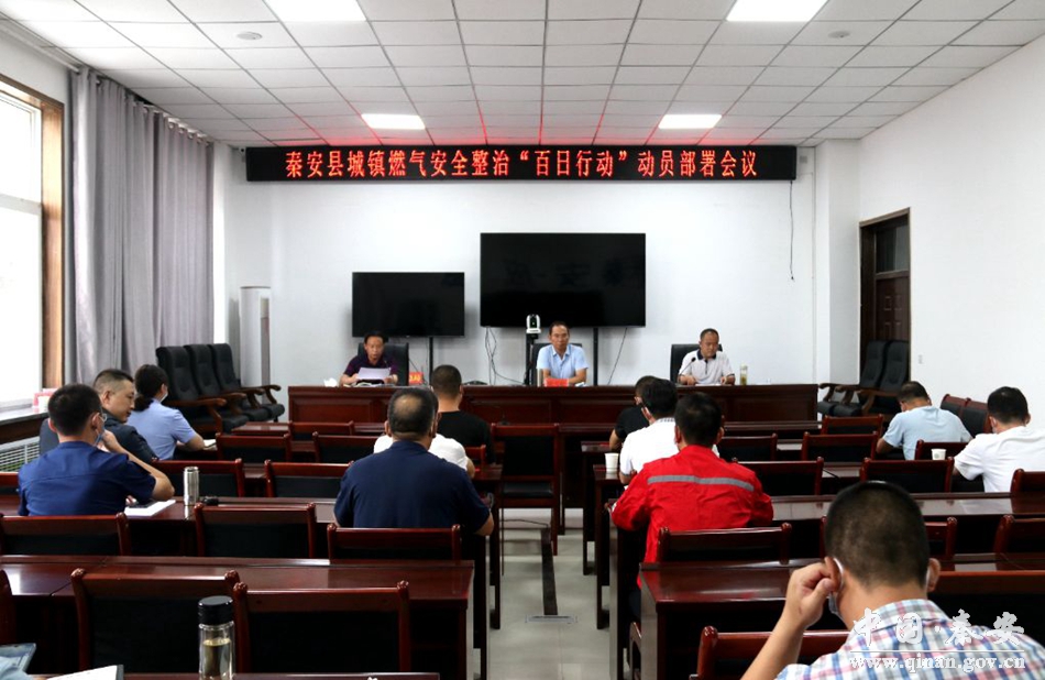 为进一步贯彻落实省、市城镇燃气安全整治“百日行动”动员部署电视电话会议精神,7月13日,秦安县召开城镇燃气安全整治“百日行动”动员部署专项会议,对全县城镇燃气安全整治活动进行了及时安排,县政府副县长陈雪松及相关单位部门、企业负责人参加会议。
