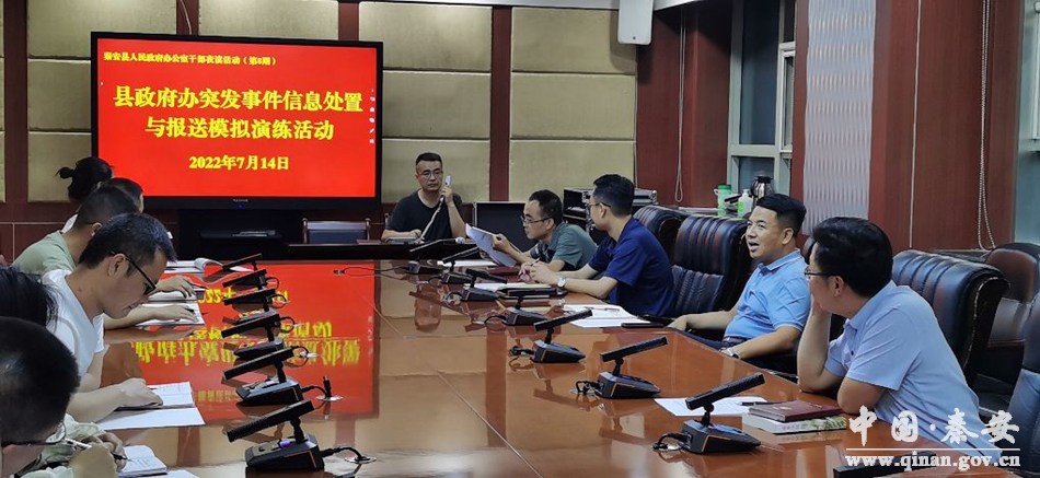 7月14日晚,秦安县政府办公室组织全体干部,开展了以突发事件信息处置与报送模拟演练为主题的第8期“干部夜读”活动,旨在进一步提升县政府办公室应急值班整体实战能力,全力做好当前防汛和疫情防控两个关键时期的值班工作,为党的二十大胜利召开营造良好、安全的社会环境。