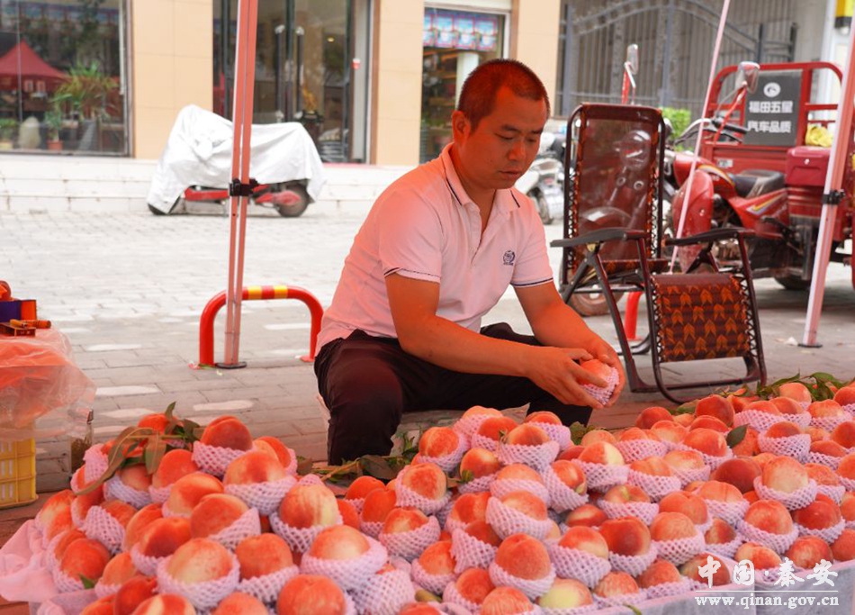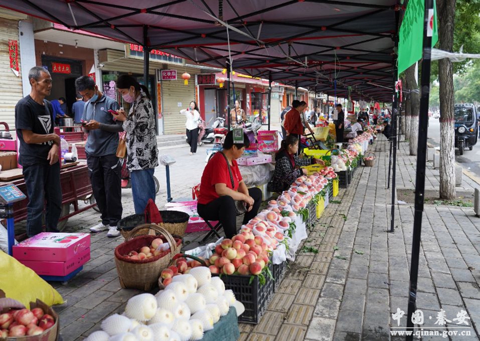 近日,记者在街泉街和太白街临时交易点看到,县执法局执法人员将自产自销农户有序引导至划定的临时经营点,摊贩们整齐有序地进行水果销售,前来购买蜜桃的市民络绎不绝。