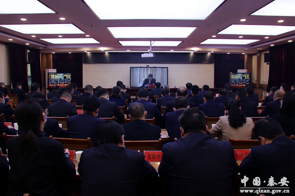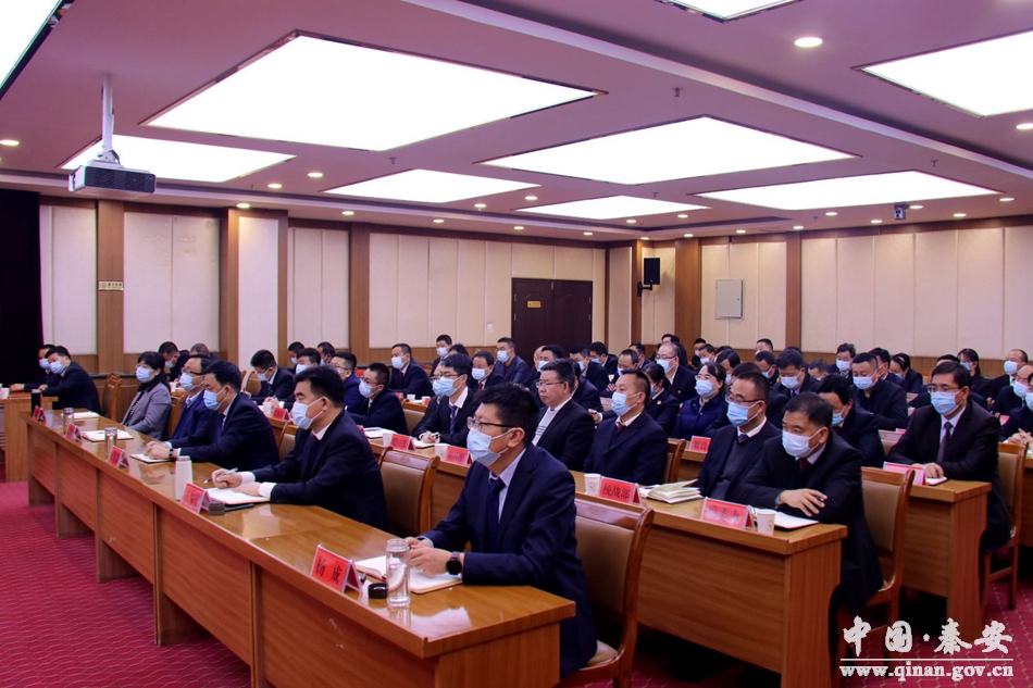 秦安县领导张俊义、王育盛、张涛涛、杨成、车晓珍及相关部门负责人在秦安分会场收听收看会议。