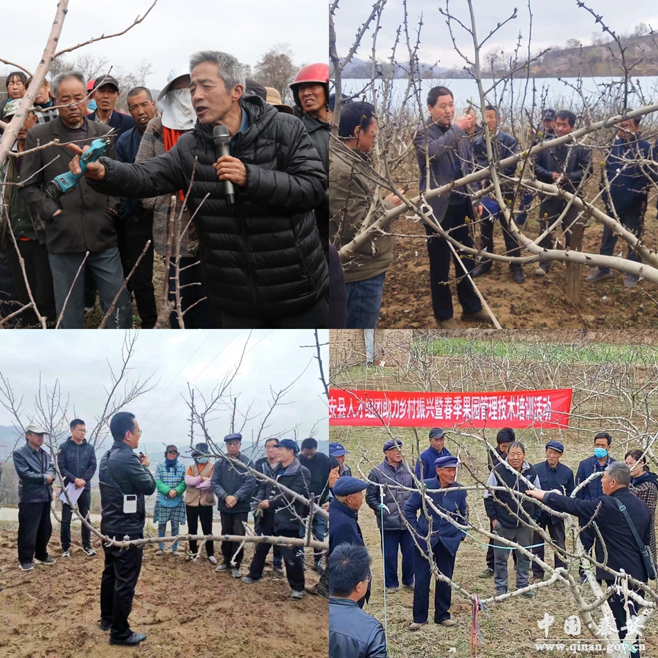 为积极有效预防近日低温天气给农业生产带来的不利影响,4月4日,秦安县委组织部组织市级领军人才靳志强、蔡麟阁和市级乡土人才王春芳、冯爱军,深入兴丰镇8个行政村开展了低温冻害防治、春季果园管理要点技术培训,现场培训果农400余人。