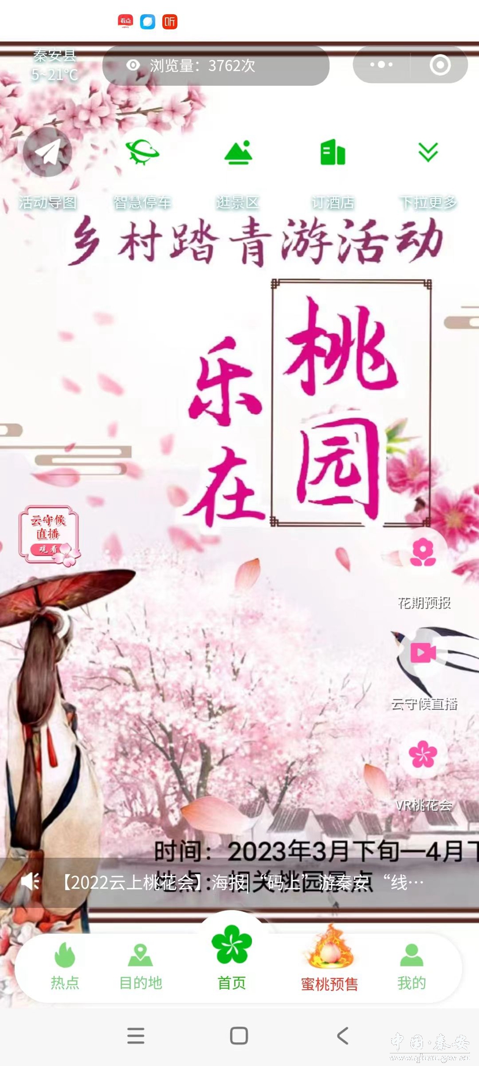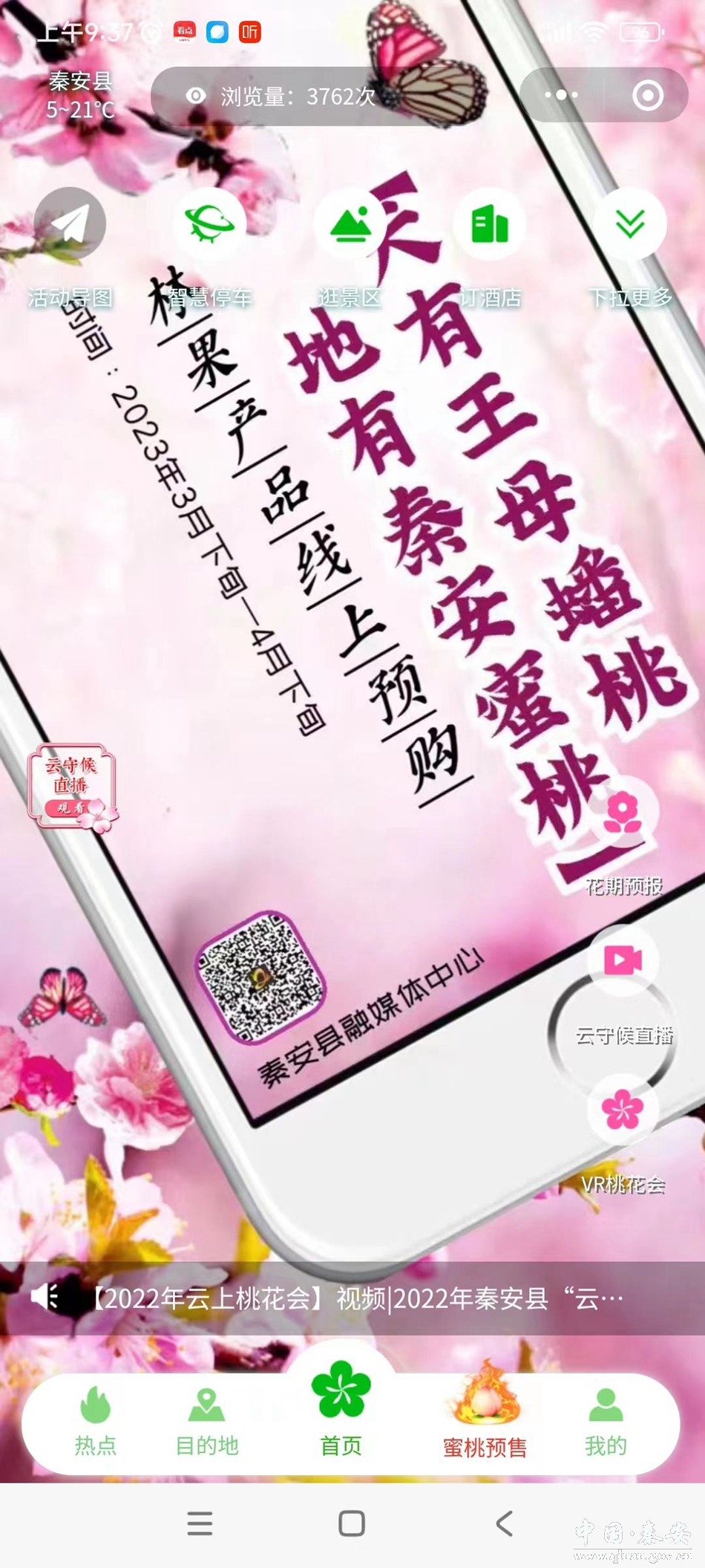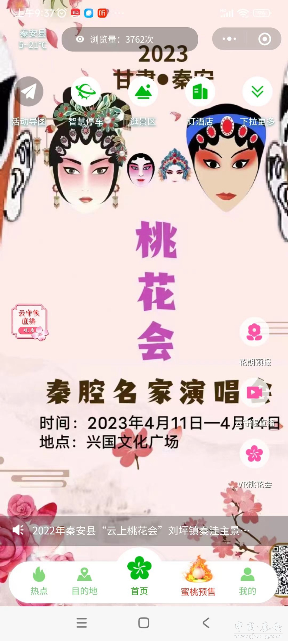 为便捷广大网友和游客全面了解本届桃花盛会,参与各项精彩活动,足不出户欣赏秦安桃花芬芳吐艳的春日胜景,预购秦安蜜桃等各种名特优产品,中国电信5G+VR精彩助力,全网推出“码上游秦安”微信小程序。