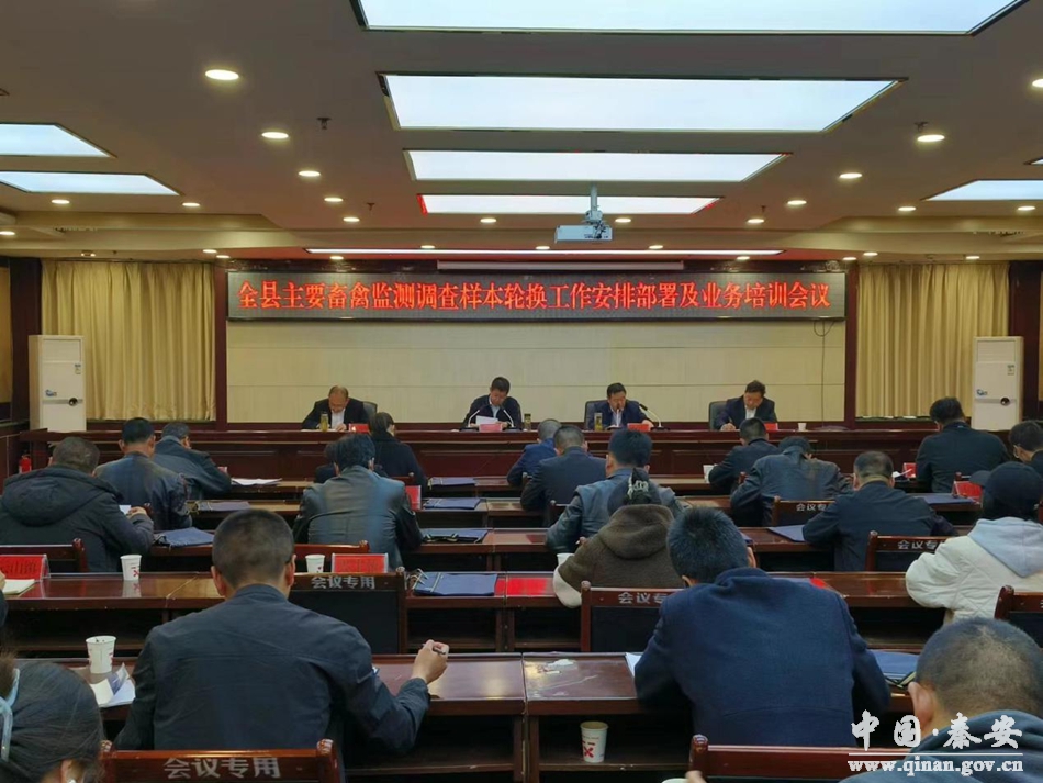 为扎实有序开展全县主要畜禽监测调查样本轮换工作,近日,秦安县召开主要畜禽监测调查样本轮换工作安排部署及业务培训会议。县政府副县长杨成参加会议并讲话,秦安调查队、县统计局、畜牧中心主要负责人,各镇分管领导和统计员,共计40余人参加会议。