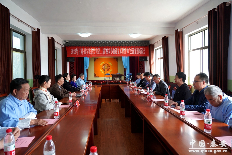 4月11日,2023年秦安桃花会“秦安小曲遇见苏州评弹”交流演出座谈会在秦安县文化馆召开,江苏省苏州市吴中区评弹团副团长钱国华、秦安县文体广电和旅游局相关负责人、秦安县文化馆负责人参加座谈。