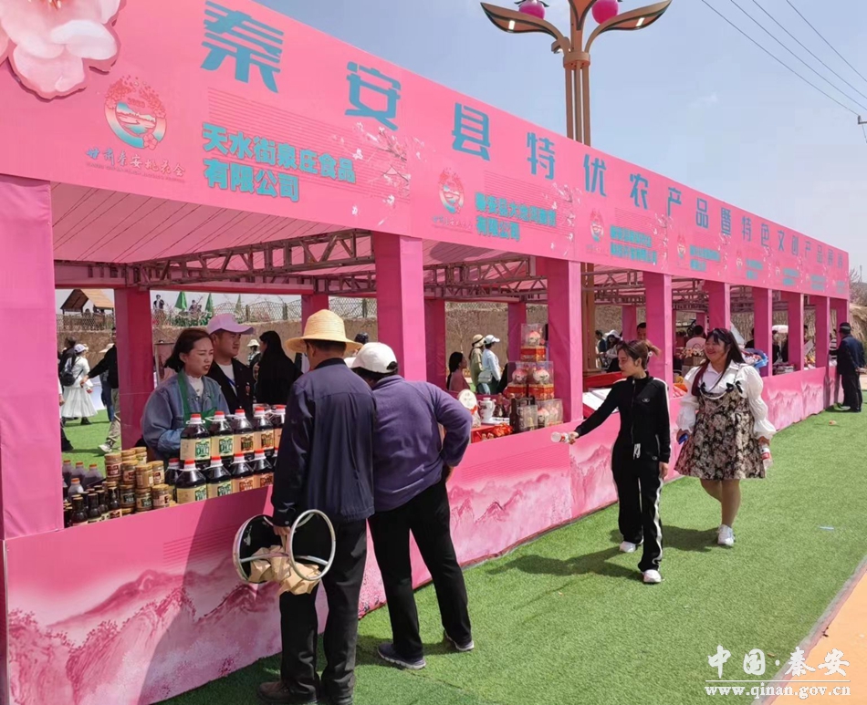 赏桃花大美,谱振兴妙曲。4月12日,甘肃秦安桃花会开园仪式在刘坪镇秦洼村举行。活动现场同步举办了特优农产品、文创产品和特色小吃展销活动。