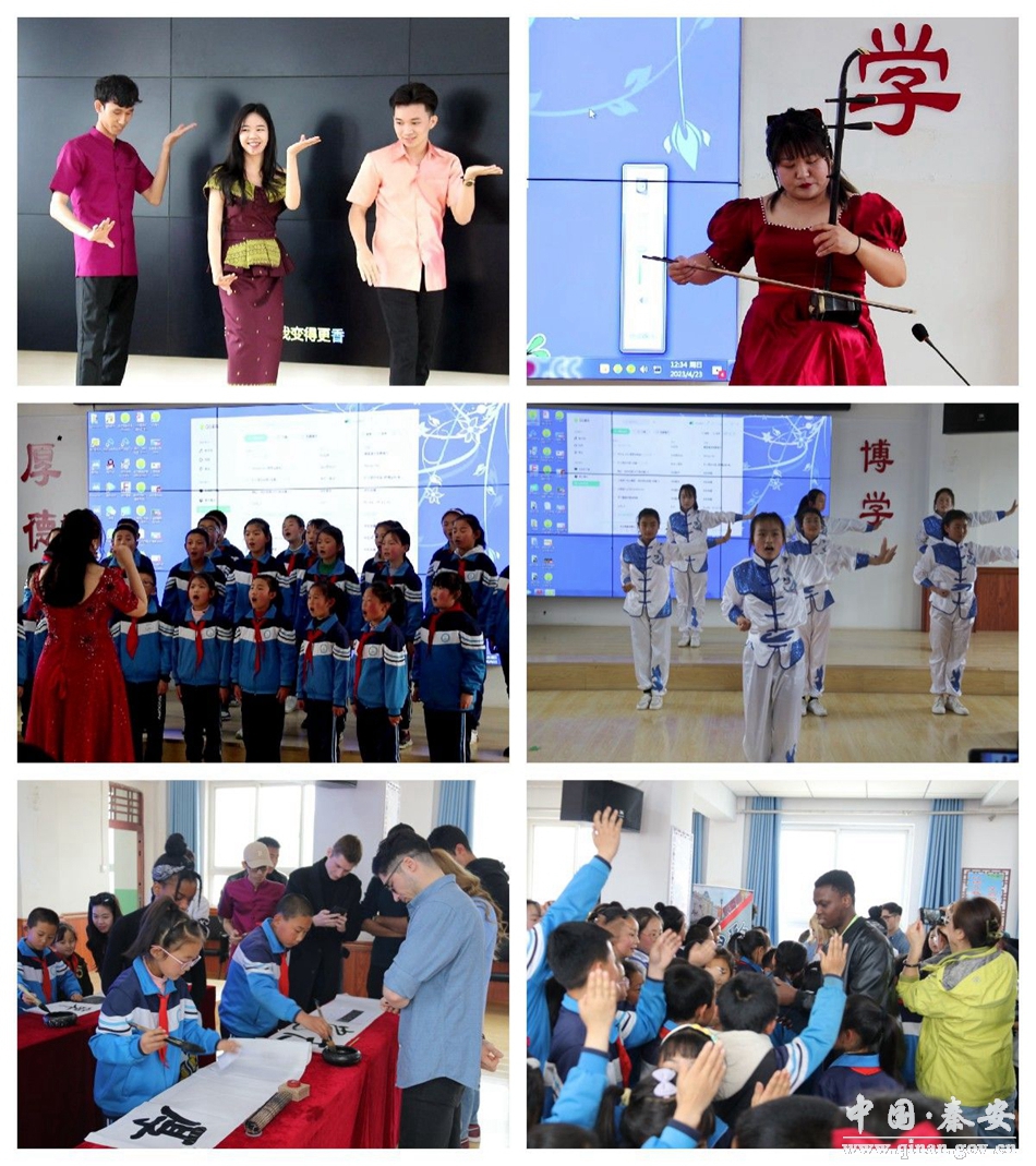 交流团先后参观了大地湾博物馆、陇城学区、刘坪镇康坡村陶艺馆等地。在陇城学区,交流团分别讲述了他们丰富多彩的大学生活,分享了各自国家的文化及人文、自然风光。陇城学区的师生们也精心准备了舞蹈、合唱、古筝二胡合奏、武术等节目,与北京科技大学国际学生近距离接触体验中外文化的融合和碰撞,共鉴艺术风采、分享别国文化,大家积极互动,在欢乐的气氛中,增进彼此了解、深化了情谊。