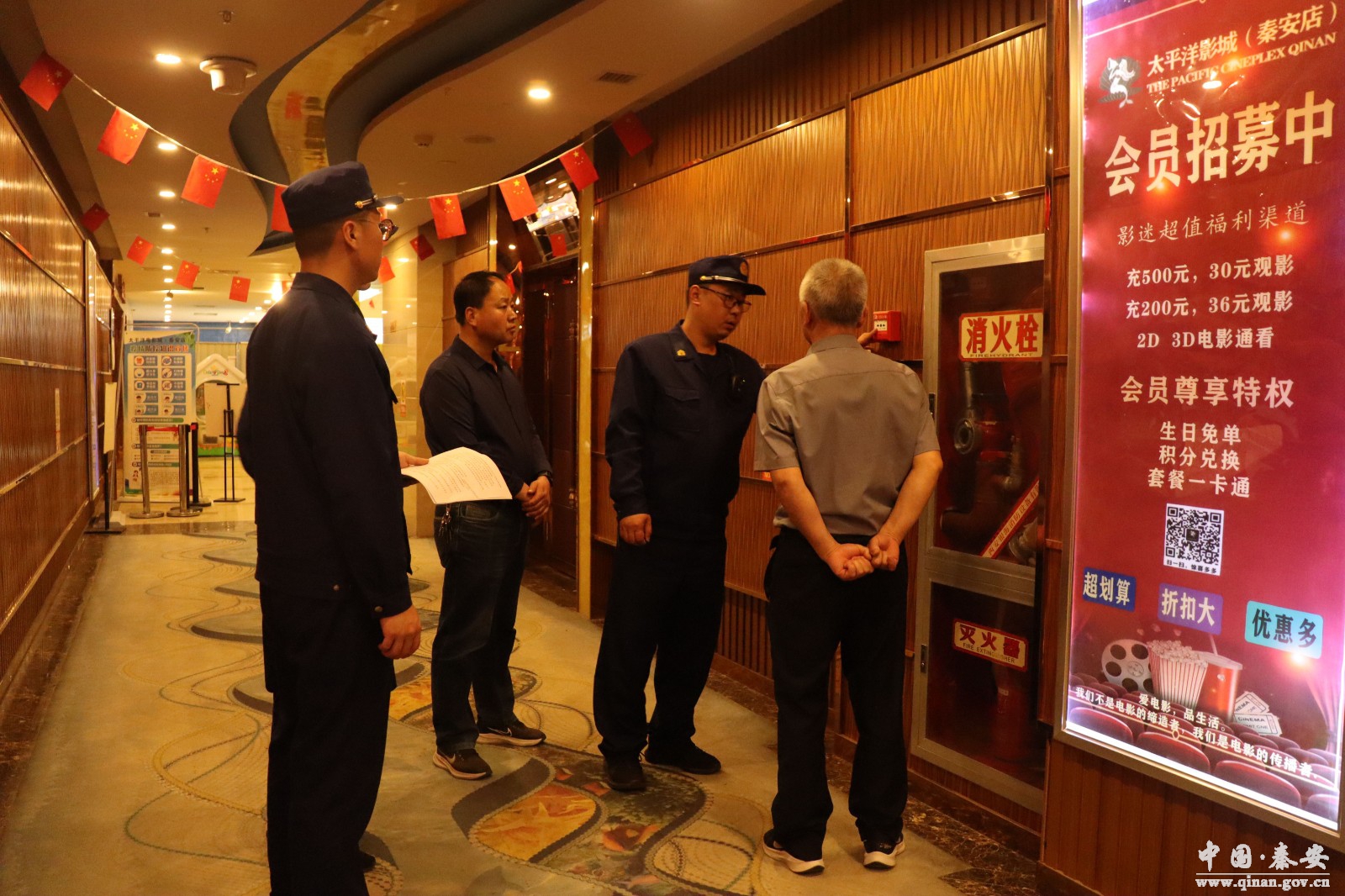 为进一步加强电影行业消防安全管理,着力构建电影行业消防安全风险管控和隐患排查双重预防机制,督促经营单位落实主体责任,4月19日,秦安县委宣传部联合秦安县消防救援大队对太平洋影院(秦安店)消防安全工作进行了现场检查。