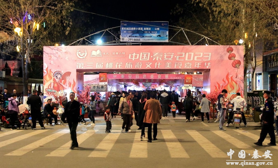 风吹桃花满城香 ,秦安美食待客来。 4月12日,2023年甘肃秦安桃花会系列活动——“畅游秦安桃花源 品味全球美食”秦安县第三届桃花旅游美食嘉年华活动在新华街举行。
