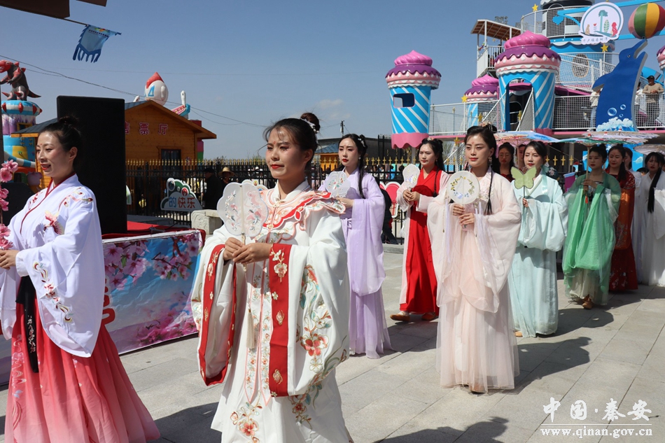 为进一步激发千户镇文化旅游市场活力,拉动文化旅游业消费,打造乡村旅游发展名片,增强对中华传统美德及传统文化的认同感,4月14日,“桃乡汉服秀 情暖杏树湾”2023年甘肃秦安桃花会之千户镇杏树湾游园系列活动开幕。秦安县领导王育盛、吴建忠、逯虹,以及县商务局、文旅局负责人,千户镇全体领导班子成员、群众代表、镇村干部参加活动。