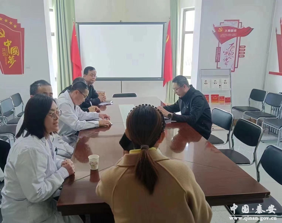 4月25日,秦安县委常委、组织部部长许祖熙带领调研组先后深入秦安县第四中学、秦安县人民医院、秦安县职业中等专业学校,通过走访慰问、现场参观、座谈交流的方式,就“组团式”帮扶工作开展情况进行了调研。县教育局、县卫生健康局和受扶医院、学校相关负责人及“组团式”帮扶干部人才参加调研。