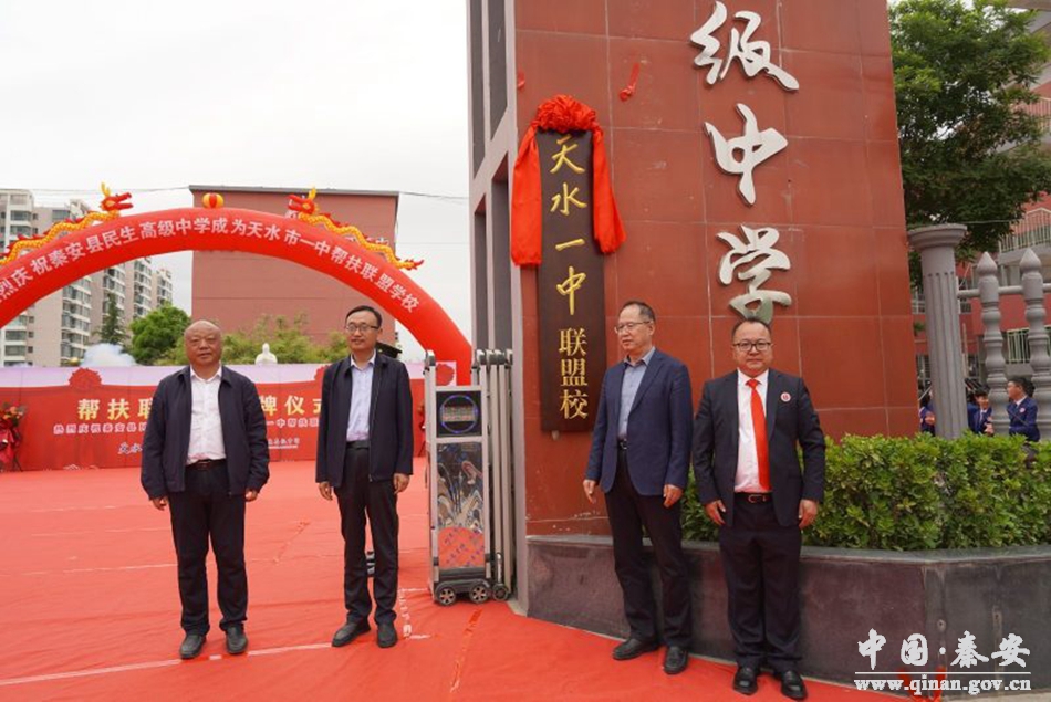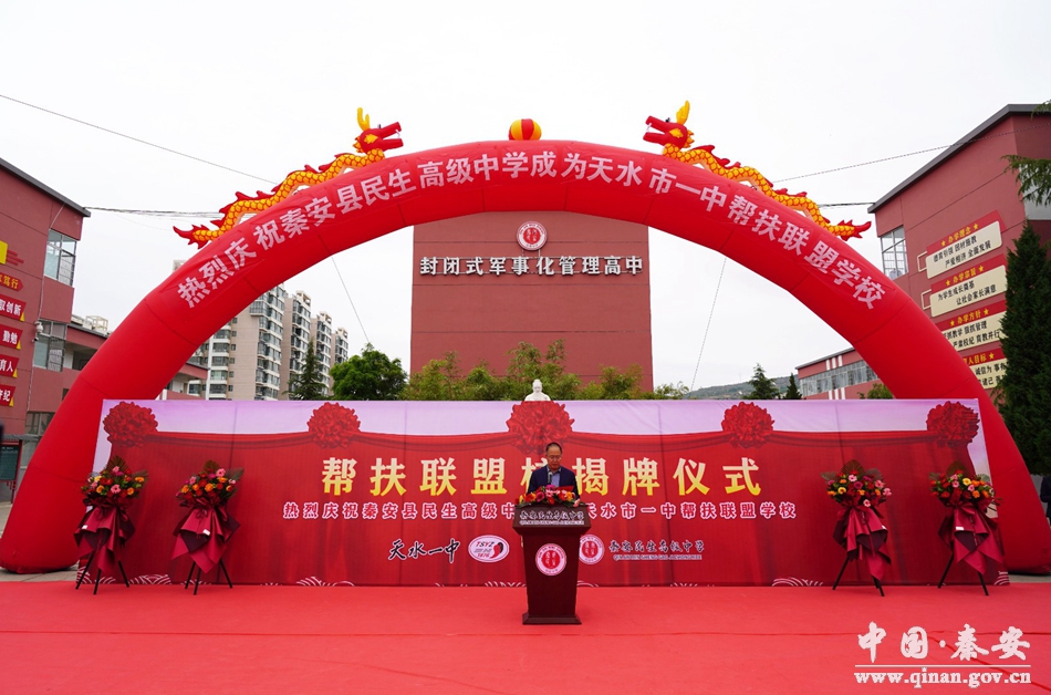 5月27日,天水市一中和秦安县民生高级中学帮扶联盟校正式揭牌成立。天水一中校长宋廷军,秦安县政府副县长张涛涛,县教育局负责人以及城区学校负责人、民生中学全体师生参加揭牌仪式。