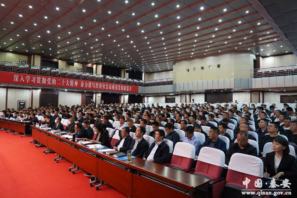 省林草局党组成员、副局长刘天波,县委书记周济,县委副书记、县长王龙强,县人大常委会主任马顺祥,县政协主席杨喜春等县四大组织全体在家领导,以及各镇党委书记、镇长、副书记,县直各部门、驻秦各单位班子成员共计390余人参加会议。