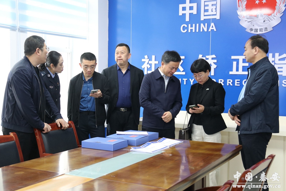 5月24日,省司法厅社区矫正管理局局长侯小平带领调研组来秦安县调研指导社区矫正主动创稳暨监管突出问题、智慧矫正中心建设工作,市司法局副局长霍珍珍,县政府副县长、公安局局长薛天胜一同调研。