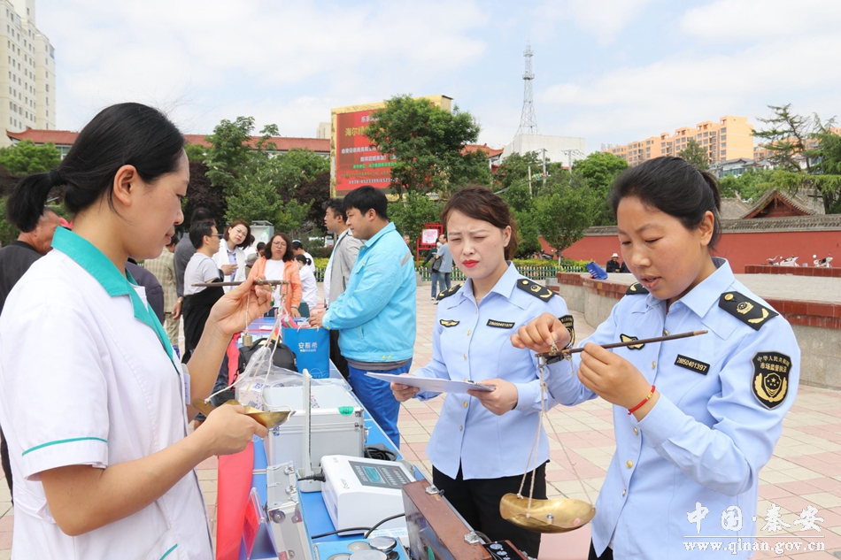 活动现场,通过设立展板、咨询台、悬挂横幅标语等形式,向广大群众宣传日常生活中有关计量的法律法规、能源计量、安全防护等相关知识,现场解答群众在使用民用“三表”时出现的问题和血压计常见故障及常识,免费为商户检修电子秤等计量仪器,进一步提高商用计量仪器精确度。同时,根据群众反映的热点行业,对医药商户进行现场的校秤,规范了产品计量,切实维护广大消费者的利益。