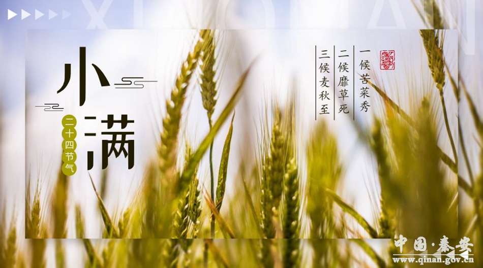 小满,二十四节气中的第八个节气,也是夏季的第二个节气。小满,斗指甲,太阳达黄经60°,于每年公历5月20—22日交节,《说文解字》将“满”字释为“盈满”,有“充满”“饱和”“足够”之意。“小满”,顾名思义,有着“满而不足”“满而不盈”的含义。