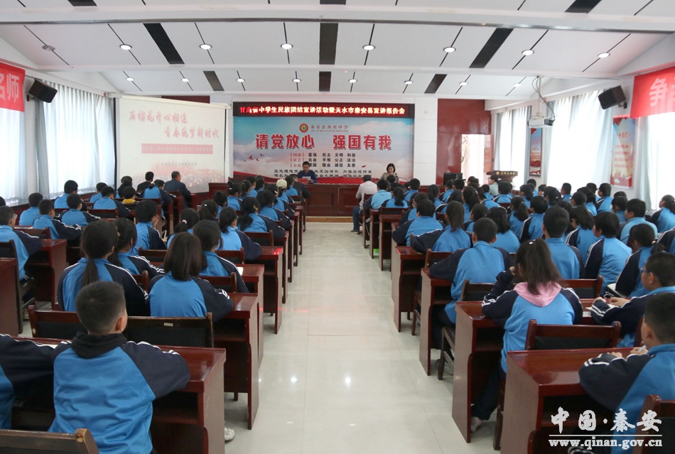 为深入贯彻落实习近平总书记关于做好新时代党的统一战线工作的重要思想,全面贯彻落实中央和省委民族工作会议精神,进一步加强民族团结进步教育。5月16日,甘肃省中学生民族团结宣讲活动暨天水市秦安县宣讲报告会在秦安县西川中学举行。秦安县委统战部相关负责人,西川中学部分师生代表聆听了报告会。