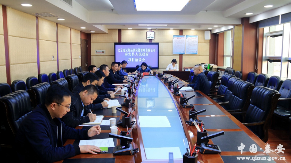 5月15日,北京瑞元鲜品供应链管理有限公司董事长李彤来秦安县,就相关项目进行洽谈对接。 县委常委、组织部部长许祖熙,县政府副县长杨成及相关部门单位主要负责人参加会议。