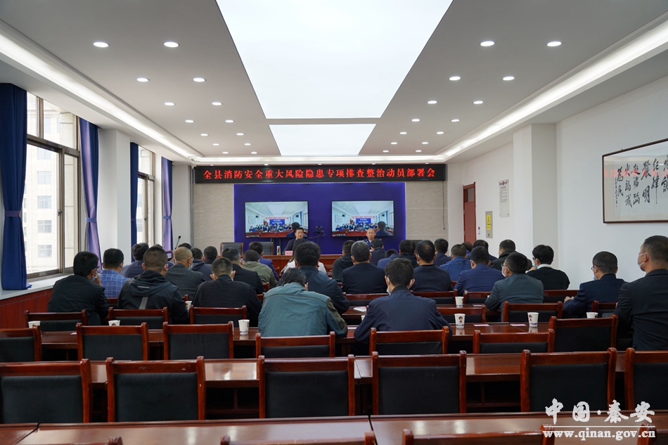 4月27日,秦安县召开消防安全重大风险隐患专项排查整治动员部署会。秦安县委常委、政法委书记庞胜前及相关部门负责人参加会议。