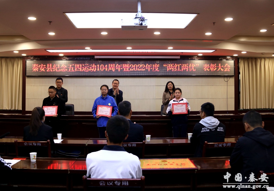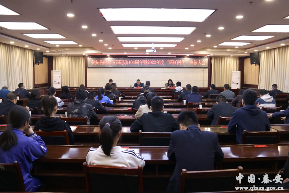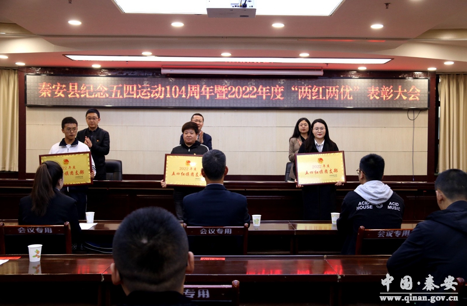 4月27日,共青团秦安县委举行纪念五四运动104周年暨2022年度“两红两优”表彰大会。秦安县委副书记蔡鹏云,团县委班子成员,各乡镇、县直学校团委负责人,受表彰单位及个人代表共计50余人参加会议。