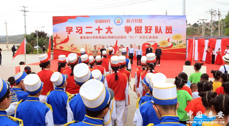 春风化雨润桃李,丹心向阳育英才。5月30日,秦安县兴丰教育园区揭牌仪式暨庆“六一”文艺汇演活动在兴丰镇兴丰中学举行。县委常委、宣传部部长常乐,县政府副县长张涛涛及县教育局负责人、兴丰镇负责人、兴丰学区负责人和兴丰中学、中心小学、中心幼儿园全体师生共计900余人参加活动。