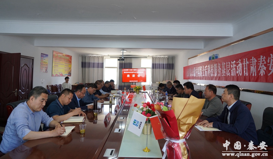 5月29日,秦安县2023年中国博士后服务基层座谈会召开。中国科学技术大学环境系博士后曹静静、南京农业大学博士后、讲师梅新良,市农业农村局二级调研员藏鹏飞,市农业生态中心主任、正高级农艺师陶志刚,县委常委、副县长王育盛及相关部门负责人参加会议。