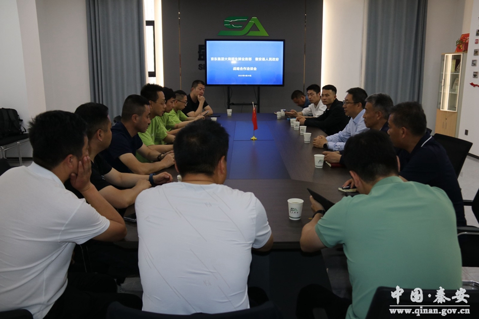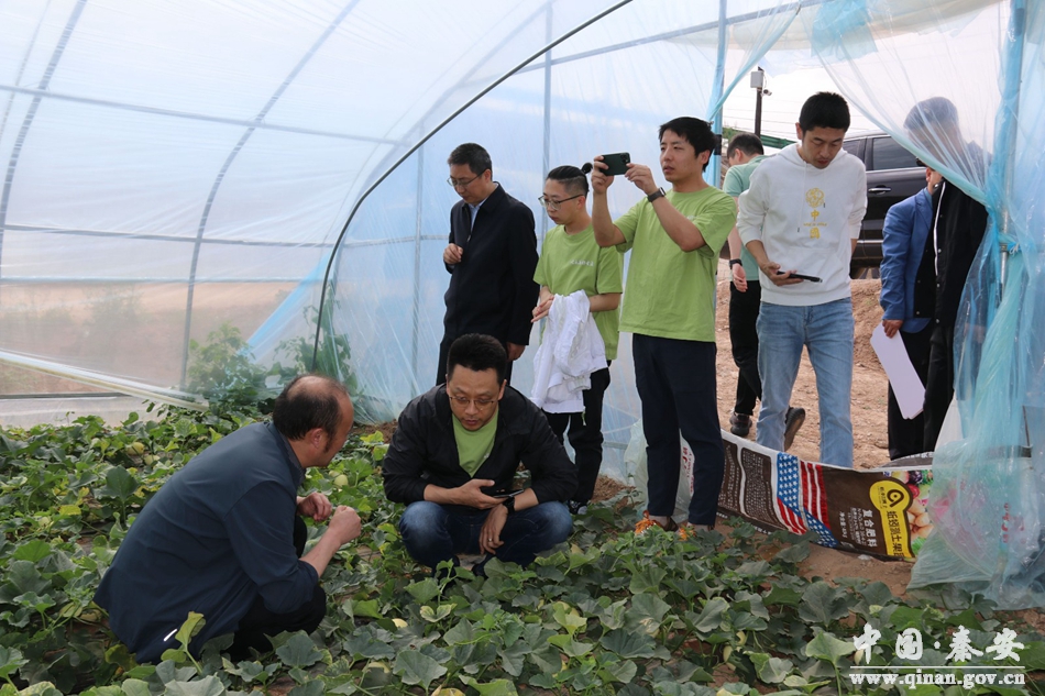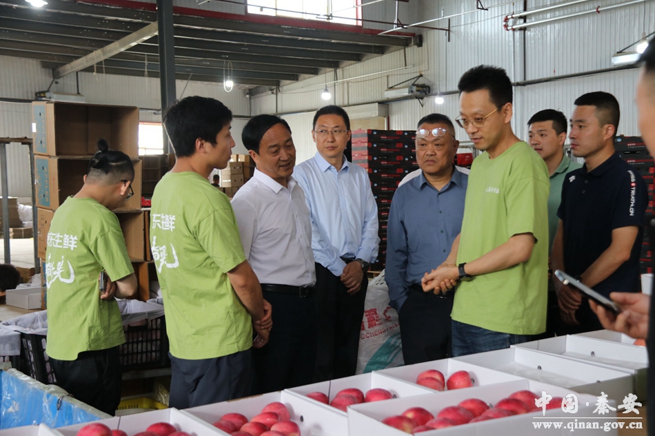 5月30日,京东集团大商超事业部生鲜业务组总经理金吉寿带领业务部负责人来秦安县考察白脆瓜、蜜桃、苹果种植销售工作,县委常委、组织部部长许祖熙,县人大常委会副主任王优峰一同考察。