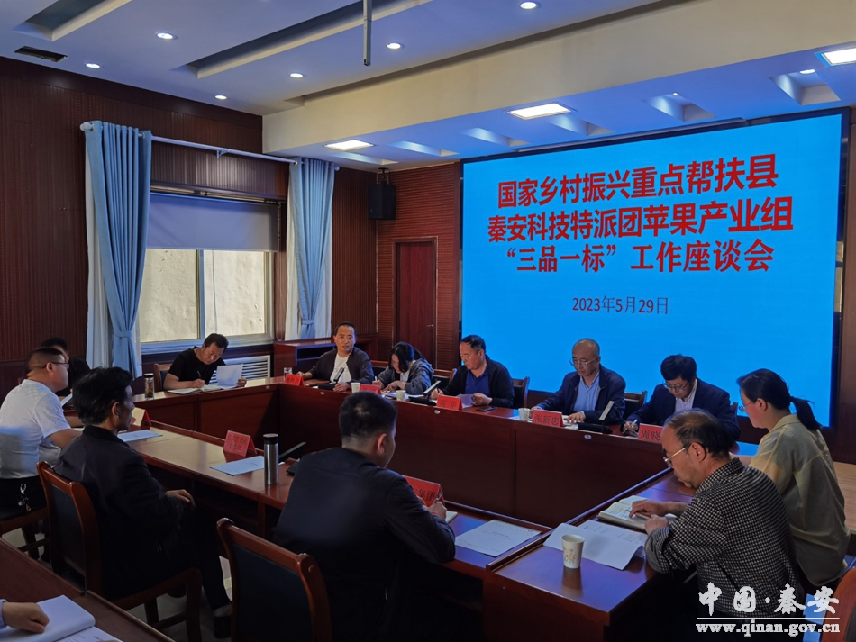 在召开的“三品一标”工作座谈会上,国家科技特派团苹果产业组就秦安在苹果产业品种、品质、品牌和标准化方面开展了有针对性的座谈交流,并就秦安苹果产业在“三品一标”建设方面提出了系统、全面的建议。