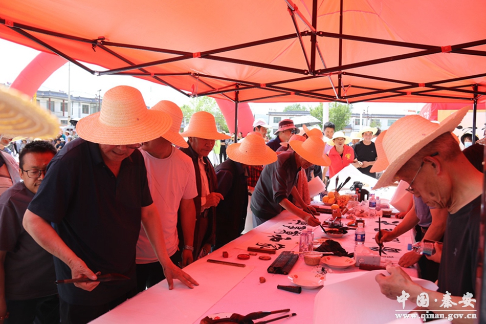 活动中,县书协名家现场挥毫泼墨,现场创作书画作品80余幅,并将部分书画作品赠予孤寡老人、特困供养人员等;县文化馆演出人员为现场群众带来了一场精彩的文艺演出;参加活动的领导还同现场群众代表一同品尝了粽子和白脆瓜。