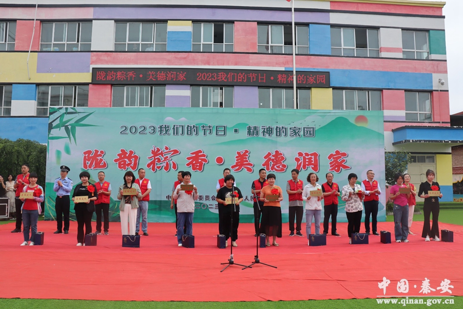 活动中,对“美丽庭院”创建评选示范户进行了表彰,与会领导为他们颁发了荣誉门牌,同时也为关爱对象佩戴端午花绳和香包,与他们一起话家常、品粽子、观看节目。