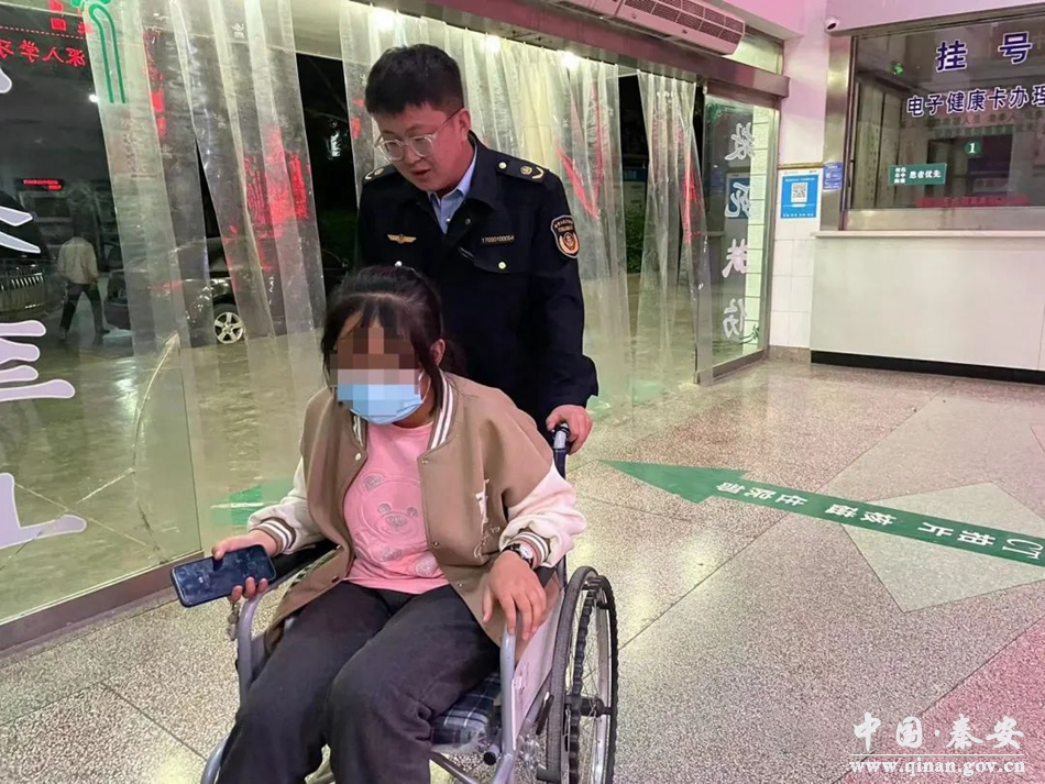 “经询问该女生为我县学生,在兰州探望父母后返回途中不慎受伤,行动不便,我们立即用执法车辆将其送往医院,并在途中联系该女生家长与老师。到达医院后,我们全程陪同该女生进行诊疗,经拍片后诊断为脚踝受伤。我们在为其取药并等家长到达后立即返回执勤岗位。” 秦安县交通运输综合行政执法队交通协管员党博告诉记者。