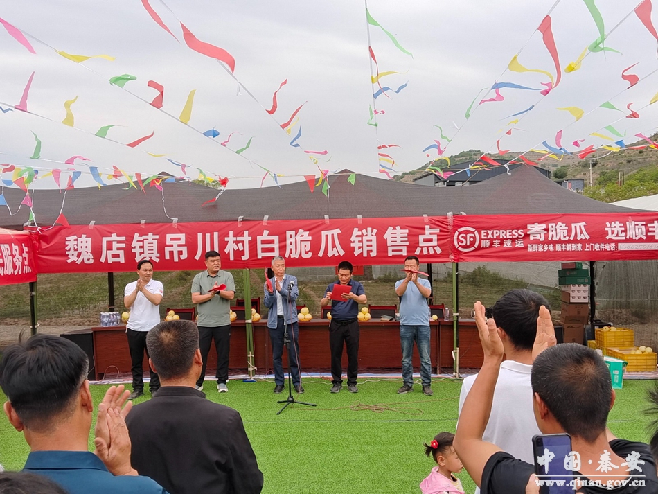 为积极搭建产销对接平台、广泛开展农超合作,通过以展促销、以销代产的方式向社会各界介绍秦安白脆瓜,推动林果产业提档升级,6月12日,秦安县魏店镇举办白脆瓜种植基地开园仪式暨白脆瓜推介活动。县人大常委会副主任王优峰,魏店镇镇村干部、帮扶工作队第一书记、电商助农小分队、镇属单位负责人共计120余人参加活动。