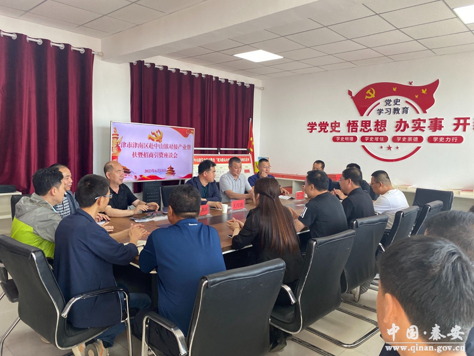 6月13日,天津市津南区发改委四级调研员张华伟带队来秦安县中山镇对接产业帮扶工作,秦安县委常委、副县长王育盛参加活动。