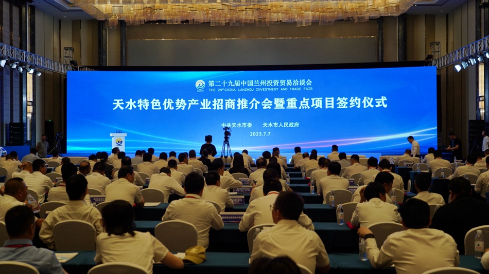 7月7日上午,第二十九届中国兰州投资贸易洽谈会天水市特色优势产业招商推介会暨重点项目签约仪式在兰州万达文华酒店大宴会厅举行。