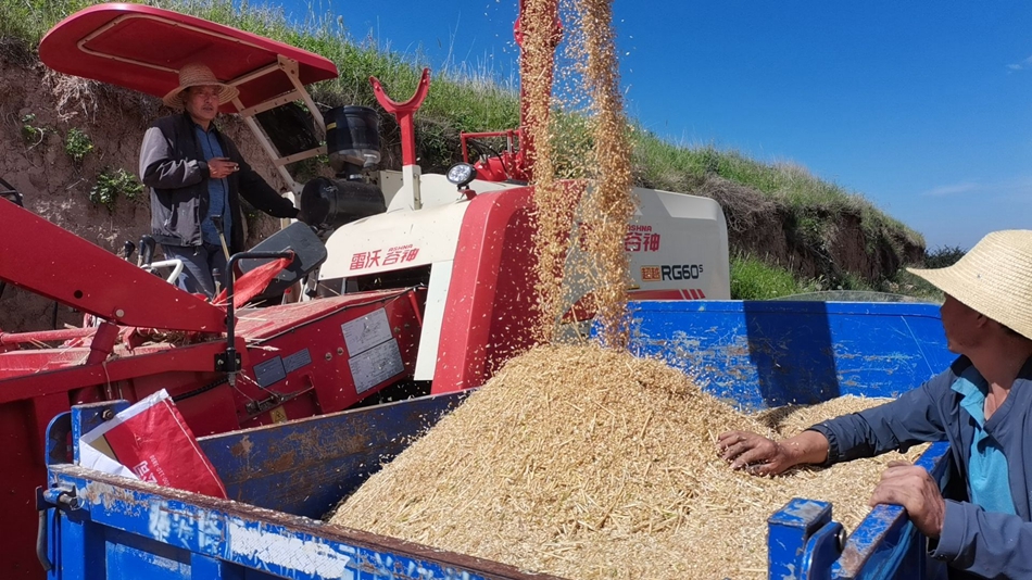风吹麦浪穗飘香,遍地金黄收割忙。眼下正值夏收农忙关键时期,秦安县莲花镇好地梁流域的500亩冬小麦陆续成熟,正式开镰收割。