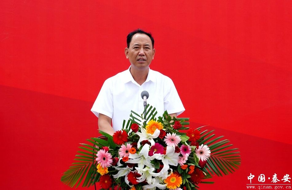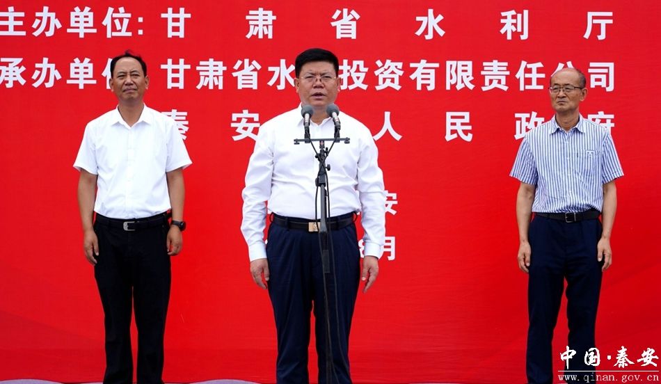 省水利厅党组书记、厅长牛军宣布引洮供水二期配套秦安县城乡供水工程通水;省水投公司党委书记、董事长汪栋介绍了工程建设情况;天水市政府副市长康泰来作了讲话;秦安县兴国镇郑川村村民靳志强代表受益区群众作了发言;省水利厅副厅长曾有孝主持通水仪式。