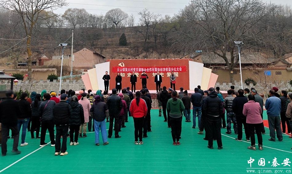 11月21日,秦安县云山镇吴大村集体经济分红大会在吴大村文化广场举行,镇领导,吴大村村干部、村股份经济合作社全体成员参加活动。