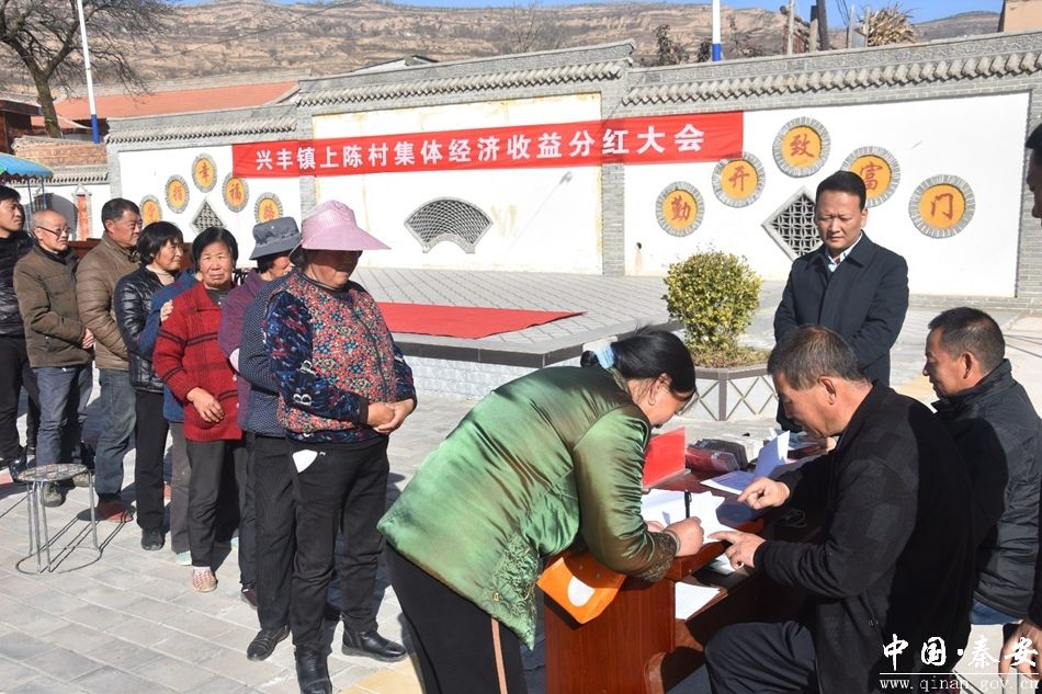 11月23日,秦安县兴丰镇上陈村举行集体经济收益分红大会,镇部分科级领导干部、上陈村干部及村股份经济合作社成员等共计160余人参加。