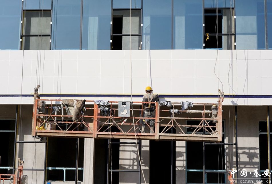 近日,记者在秦安县城乡老年养护院项目建设现场看到,该项目主体工程已完工,施工人员正在进行外墙装饰等工作,各项工作有序推进。