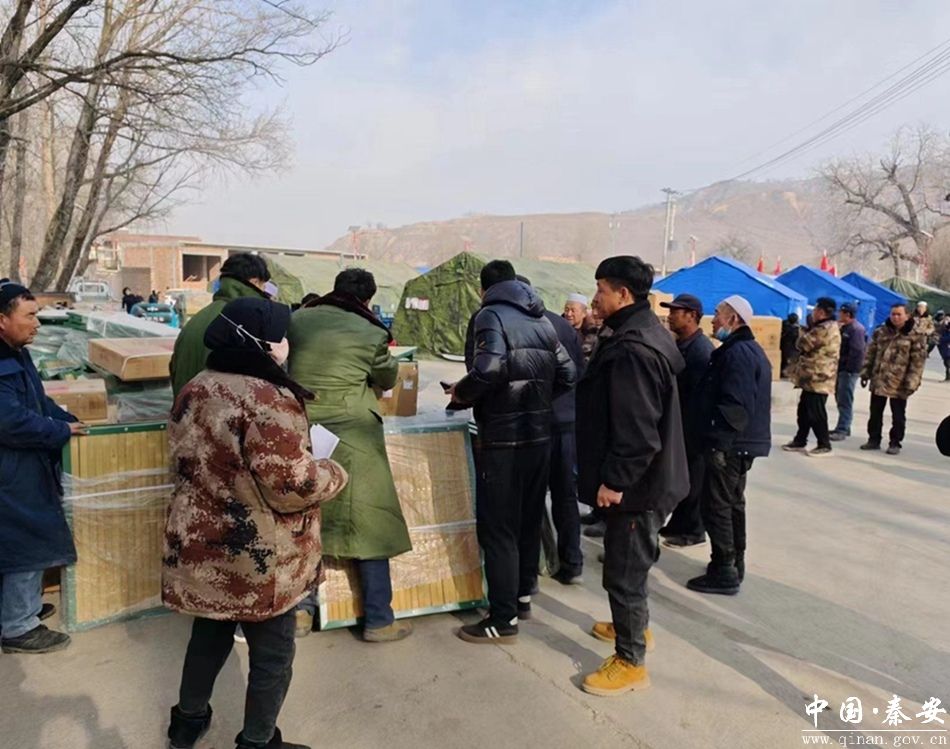 12月23日,由新疆乌鲁木齐秦安商会向积石山地震灾区捐赠的救灾物资运抵灾区后,在西部战区陆军抗震救灾前进指挥所协调下,通过绿色通道,于当天上午11时送到灾区人民群众手中。