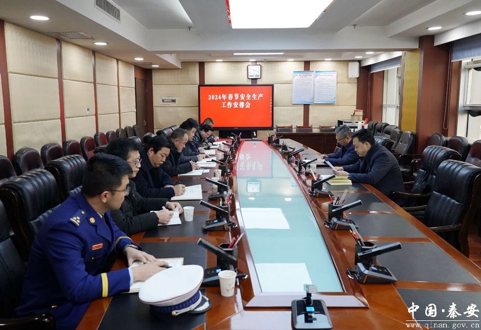 1月25日,秦安县委书记周济主持召开2024年春节安全生产工作安排会,他强调,要深入学习贯彻习近平总书记关于安全生产重要论述重要指示精神,切实增强政治敏锐性,树牢红线意识、底线思维,紧盯重点行业领域,全面排查整治隐患,抓紧抓实春节期间安全生产各项工作,确保全县人民过一个欢乐喜庆、安全祥和的春节。县委常委、常务副县长张俊义及各相关部门和兴国镇主要负责人参加会议。