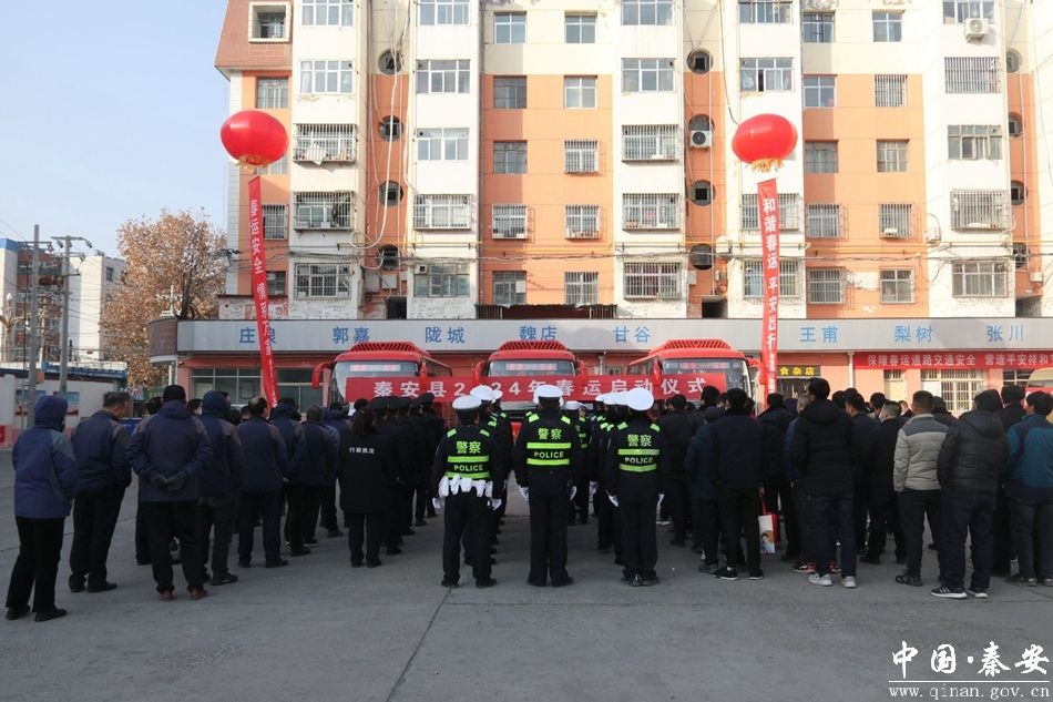为做好春运期间道路交通安全管理工作,给人民群众欢度节日营造良好的道路交通环境,1月26日,秦安县2024年春运启动仪式在县汽车北站举行。县公安局交警大队、交通运输局负责人及交警大队民辅警、交通运输局工作人员、各客运公司负责人和部分驾驶员代表参加启动仪式。