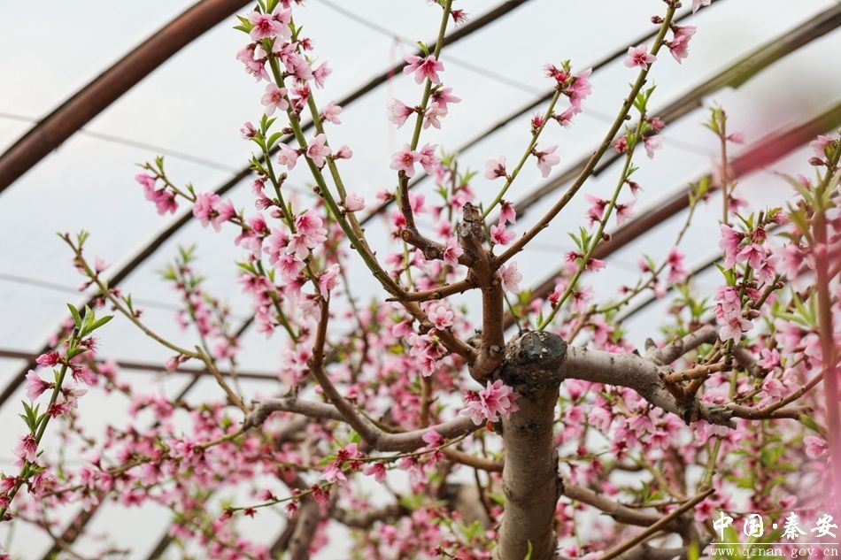蔡永忠告诉记者:“现在是大棚油桃花的开花授粉期,今年由于前期温度较大,开花早了十天,油桃也能提早十天上市。”