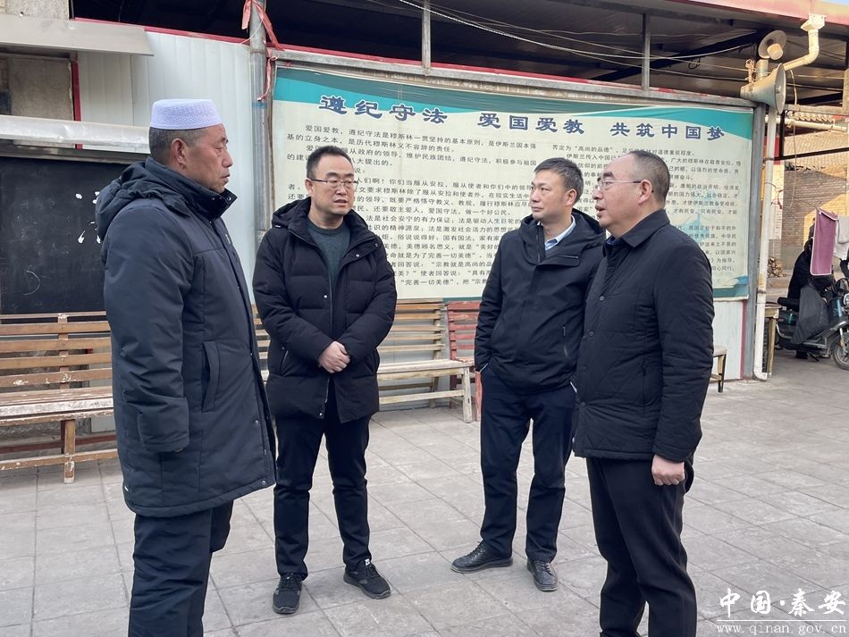 1月28日,市委统战部副部长曹兴强一行来秦安县检查宗教活动场所安全生产工作,秦安县政府副县长章春军一同检查。