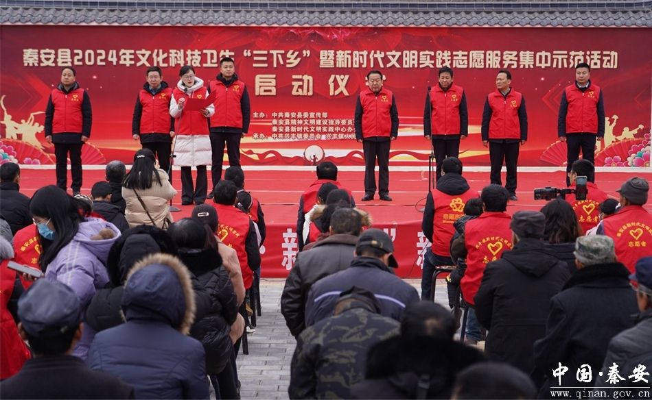 1月30日,秦安县2024年文化科技卫生“三下乡”暨新时代文明实践志愿服务集中示范活动在兴丰镇朱李村启动。县人大常委会副主任李永忠,县政协副主席李国昌及县直部门、兴丰镇党政负责人、志愿者和干部群众代表共计300多人参加活动。