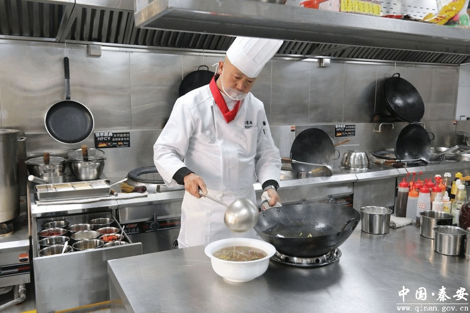 吕军强厨师一边给宋厨师长打下手一边向记者介绍说:“做好肚丝汤,要讲究刀功和火候,肚丝刀切的程度,熟烂筋道的口感,以及入锅后和调味品的搭配相融,追求完美,每个过程都需细致,酸辣肚丝汤的品质就是舌尖生津、味蕾绽放。”