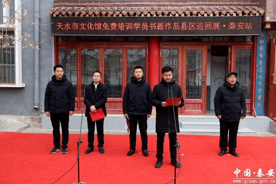 新天水讯 据秦安县融媒体中心消息 1月29日,天水市文化馆免费培训学员书画作品巡回展秦安站开展仪式在县文化馆举行。市文化馆馆长李臻,县政府副县长郑博及县委宣传部、县文旅局职工代表,县书协、美协会员和全县书画爱好者参加开展仪式。