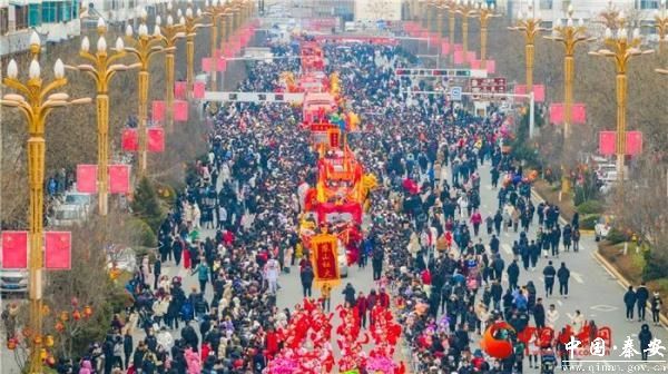 声声锣鼓激荡盛世豪情,阵阵舞步跳出新春华章。2月22日,农历正月十三,秦安县2024年春节社火汇演在主城区街道拉开了帷幕。来自各镇、各行业的表演队身着盛装,载歌载舞,欢度新春,舞龙舞狮、扭秧歌、跑旱船、耍腰鼓……精彩纷呈的演出为广大群众奉献了一场年味十足的民俗文化盛宴。