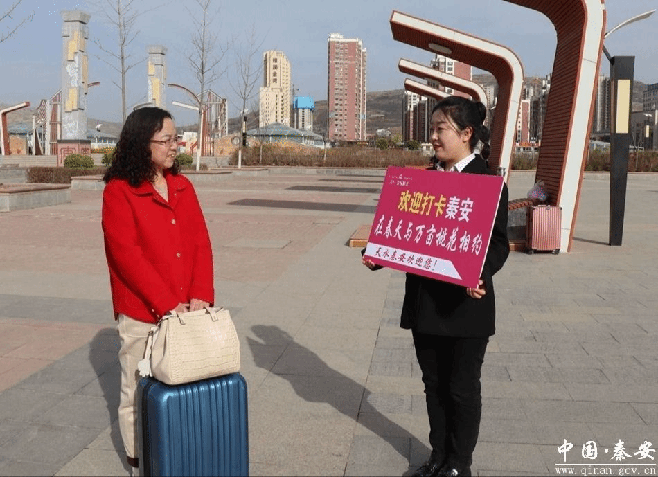 在秦安高铁站,融科金域阳光的员工举着站牌,一声声“欢迎您来到天水秦安”,一句句“欢迎打卡秦安特色美食”让外来游客感受到了秦安人的热情好客。他们在了解外来游客的需求后,一边请游客乘坐专车,一边向游客介绍秦安的人文历史、特色美食、土特产品等。