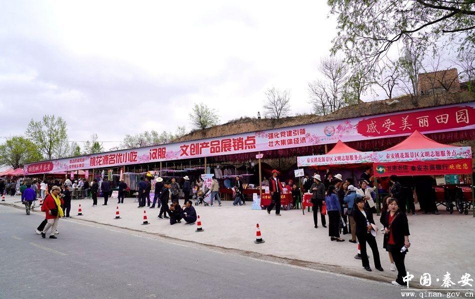 桃花开满园,游客相约来。4月12日,2024年甘肃秦安桃花会开园仪式在刘坪镇秦洼村举行。活动当天在主会场入口两侧设置了秦安名优小吃、特色美食、文创产品、汉服体验秀等展示展销点,吸引了大批游客尝美食、购文创、品文化。